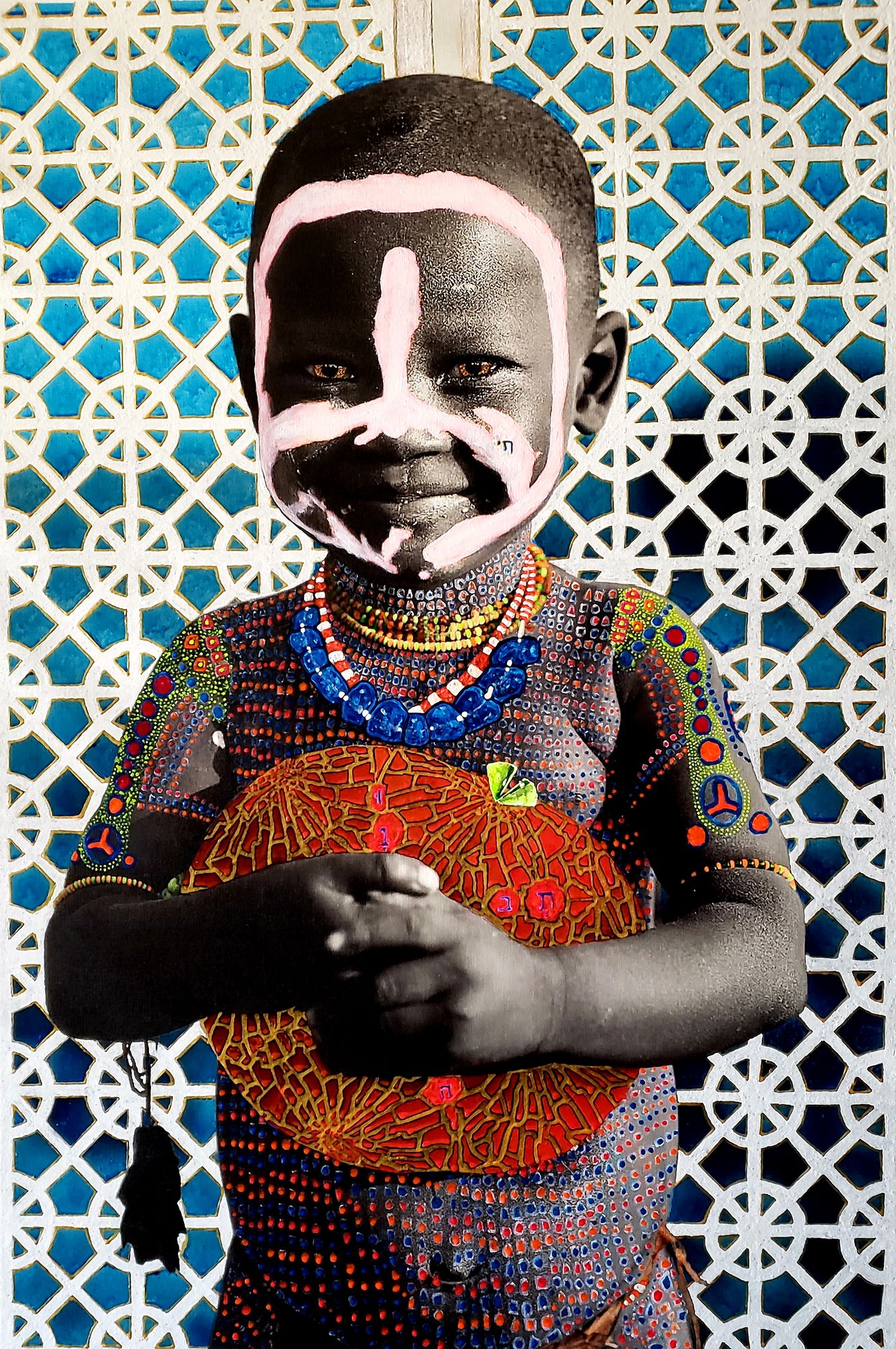 Hand painted photograph with acrylic on canvas.