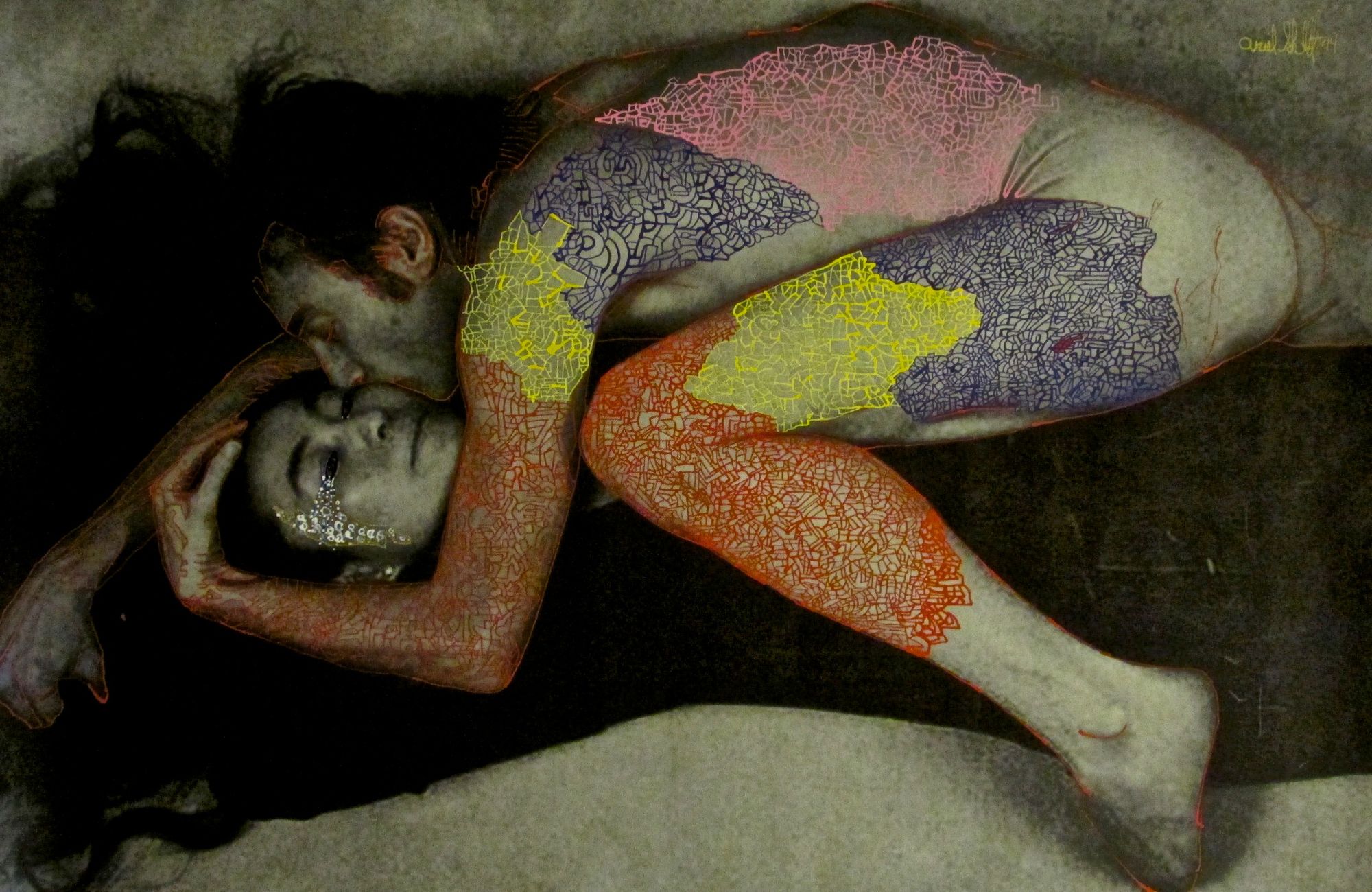 Hand painted photograph with acrylic on canvas.