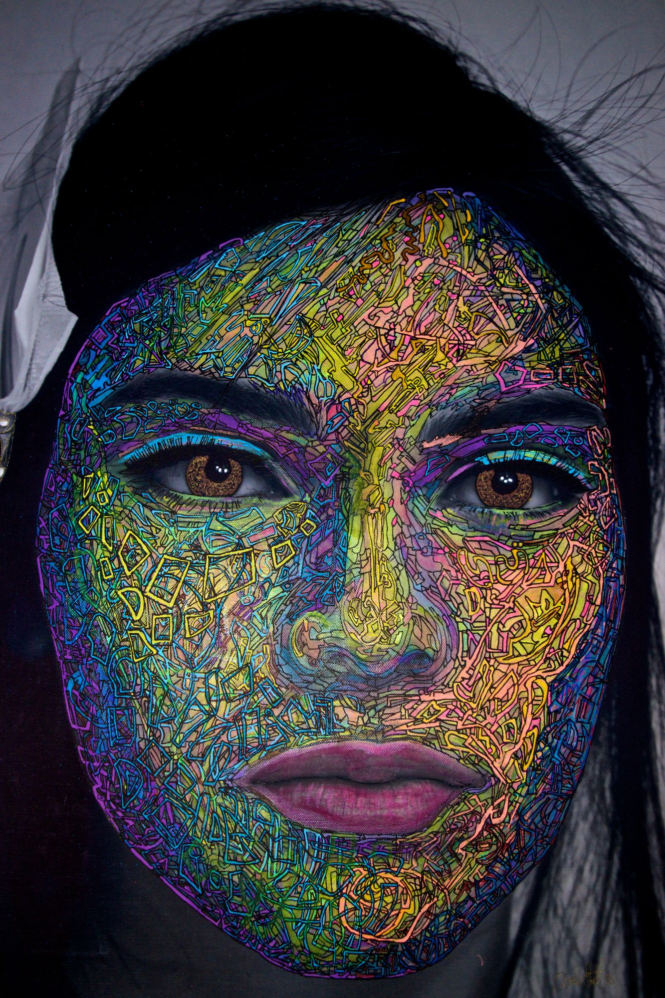 Hand painted photograph with acrylic on canvas.