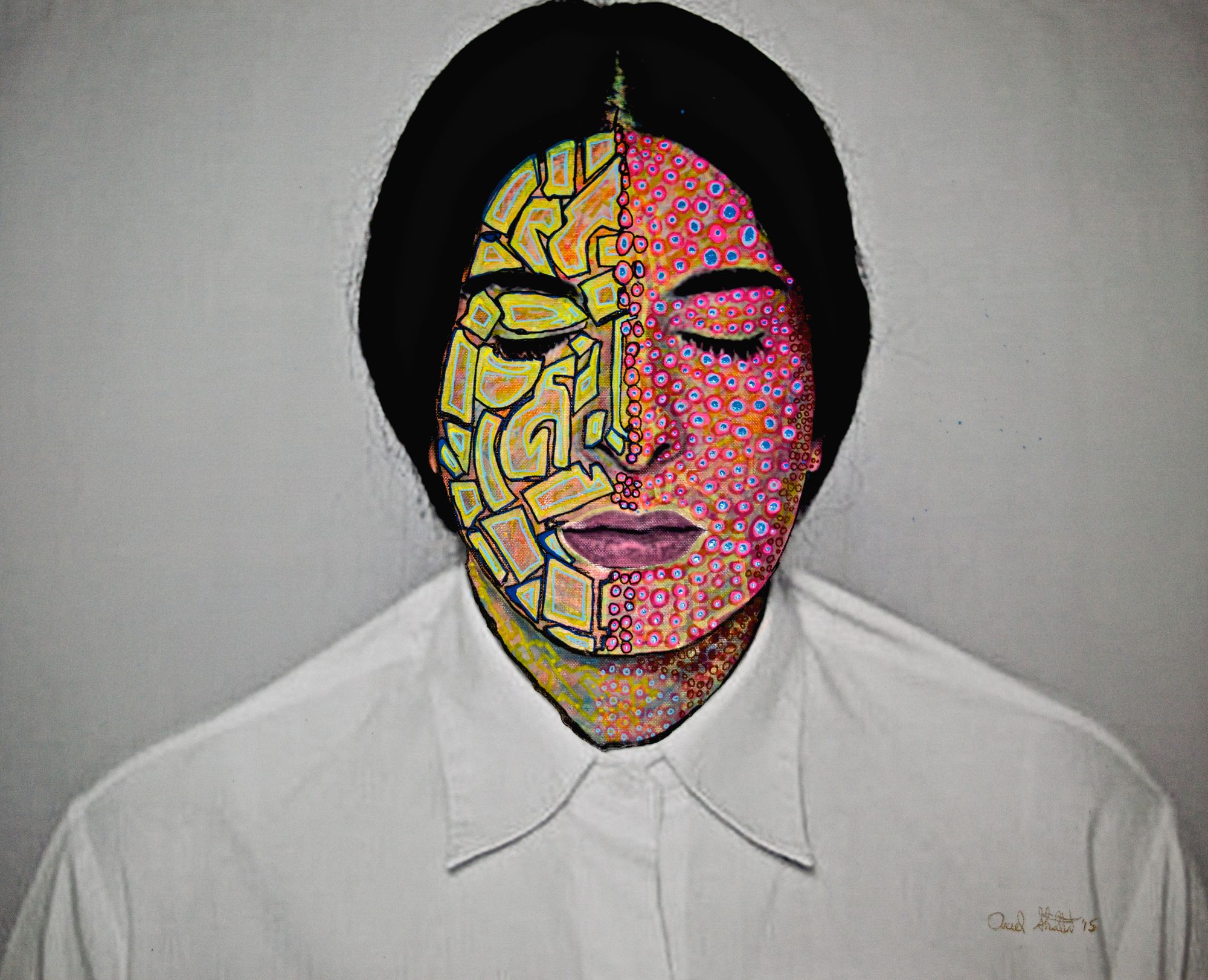 Hand painted photograph with acrylic on canvas.